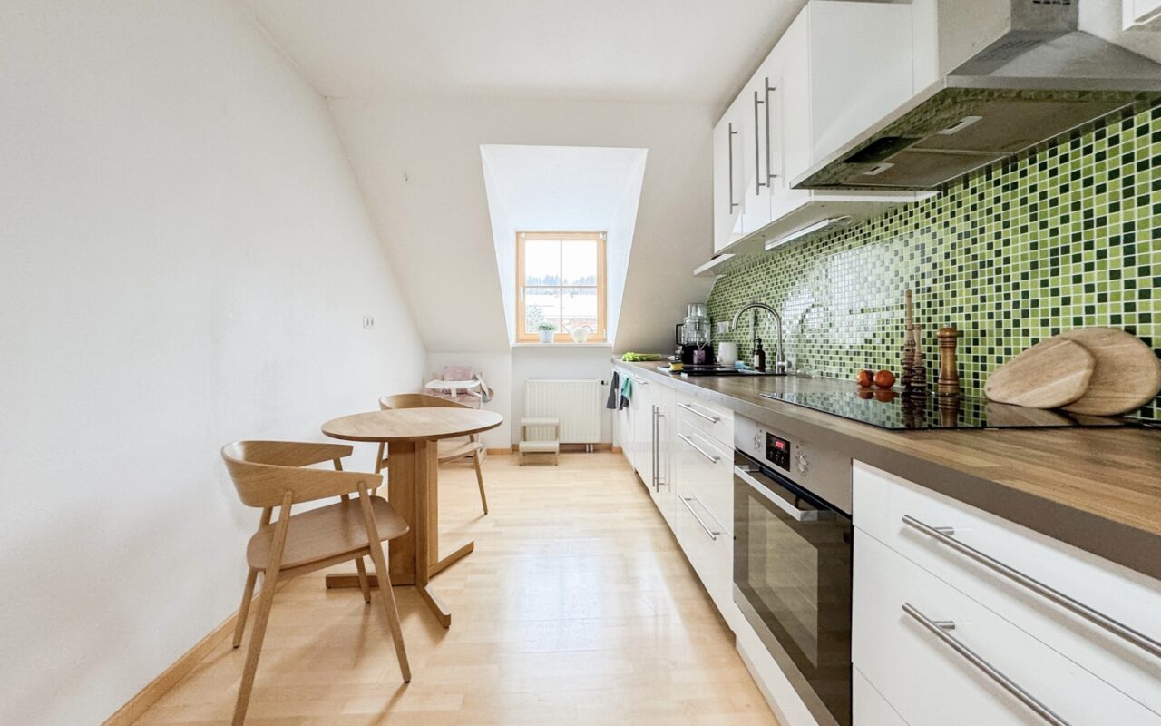 Das Herzstück der Wohnung ist das großzügige Wohnzimmer mit Schwedenofen – perfekt für gemütliche Abende. Vom nach Süden ausgerichteten Balkon genießen Sie Sonne und Ruhe. Die moderne Einbauküche mit allen Elektrogeräten lädt zum Kochen ein, während der praktische Einbauschrank im Schlafzimmer für viel Stauraum sorgt.