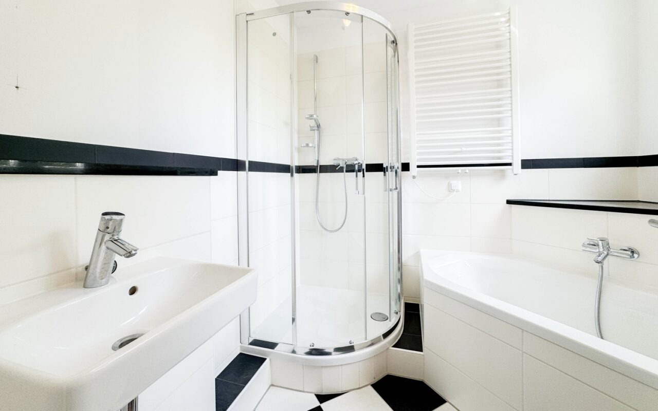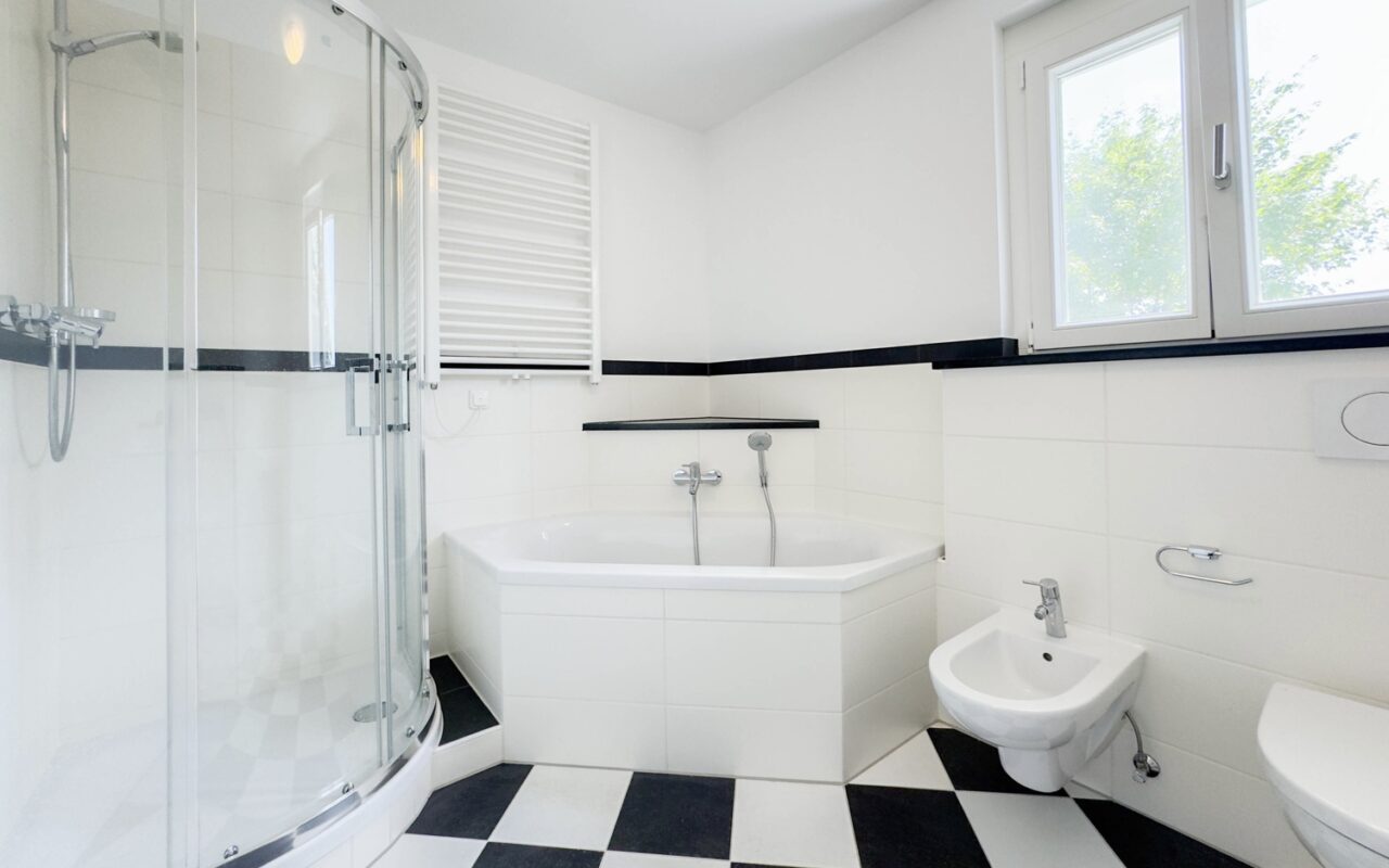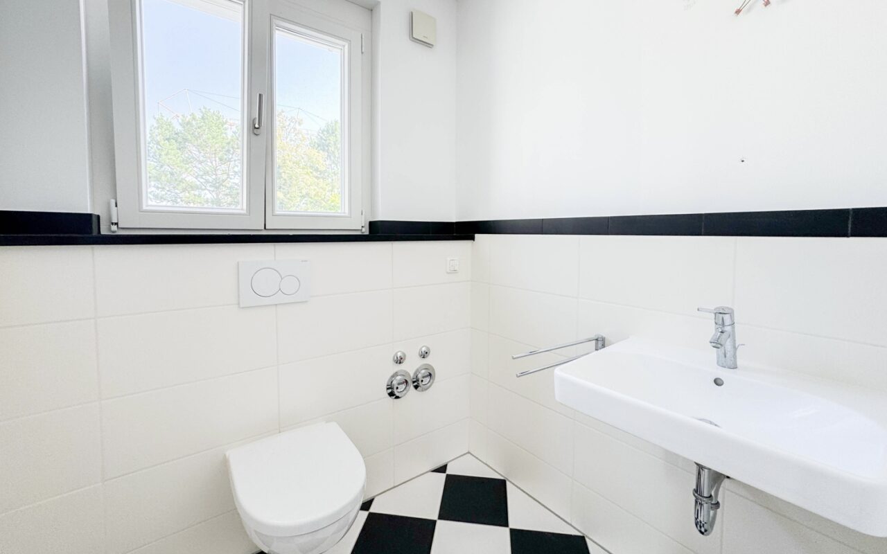 Abgerundet wird das Angebot durch ein eigenes Kellerabteil mit Waschbecken und Waschmaschinenanschluss, einen Fahrradraum sowie zwei Garagenstellplätze (zzgl. je € 80/Monat).