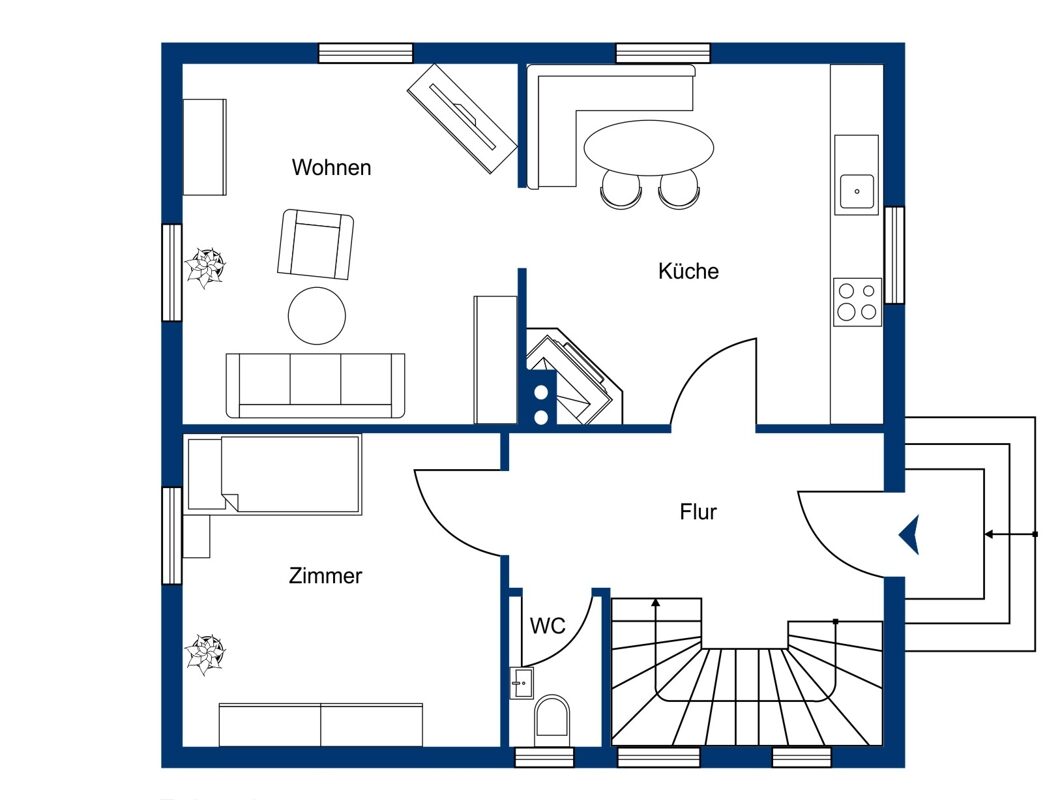 Der gemütliche Kachelofen in der offenen Küche schafft eine warme Atmosphäre und beheizt gleichzeitig das angrenzende Wohnzimmer. Insgesamt stehen 3,5 Zimmer sowie ein vielseitig nutzbarer Hobbyraum (im KG) zur Verfügung.