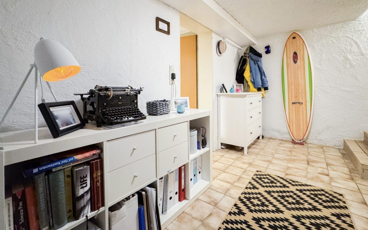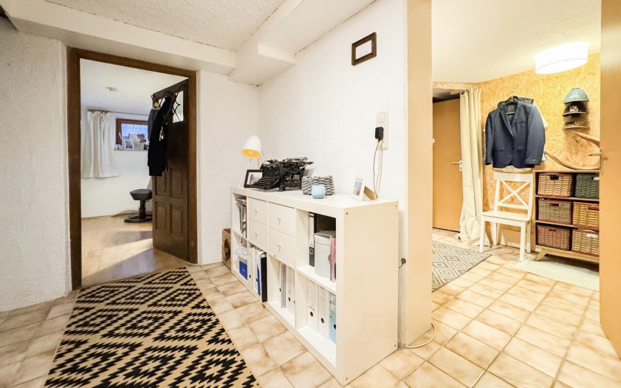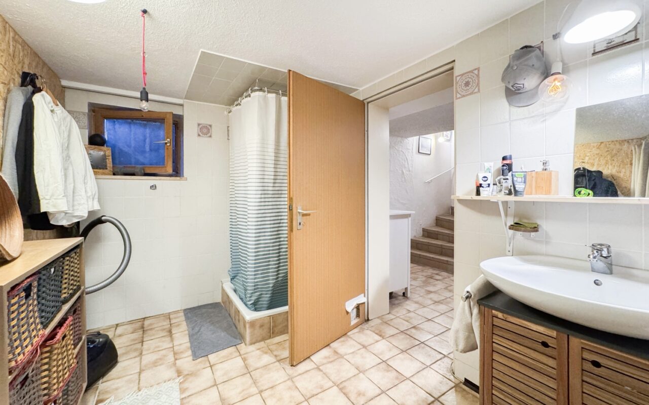 • Kachelofen (beheizt Küche und Wohnzimmer)• Parkettboden in den Wohn- und Schlafräumen• Fliesenboden in der Diele• Zwei geräumige Zimmer und Abstellräume im Obergeschoss• Bad mit Badewanne, Waschbecken und Spiegel• zwei separate WC (EG und OG)• Vielseitig nutzbarer Hobbyraum• Verschiedene Kellerräume u. a. Speisekammer mit Weinregal im Kellergeschoss• Großer Waschkeller mit Dusche und Waschbecken im Kellergeschoss• Fensterläden an allen Fenstern im Erd- und Obergeschoss• TV-Anschluss: SAT• Internetverfügbarkeit: bis zu 50 Mbit/s (laut Telekom 2025) und 175 Mbit/s Glasfaser in Planung• Südterrasse mit überdachtem Sitzbereich• Großer Garten mit zwei Gartenhäusern• Einzelgarage mit zwei zusätzlichen Außenstellplätzen• Grundstück 612 m² + Weg (Privatstraße) 76 m²